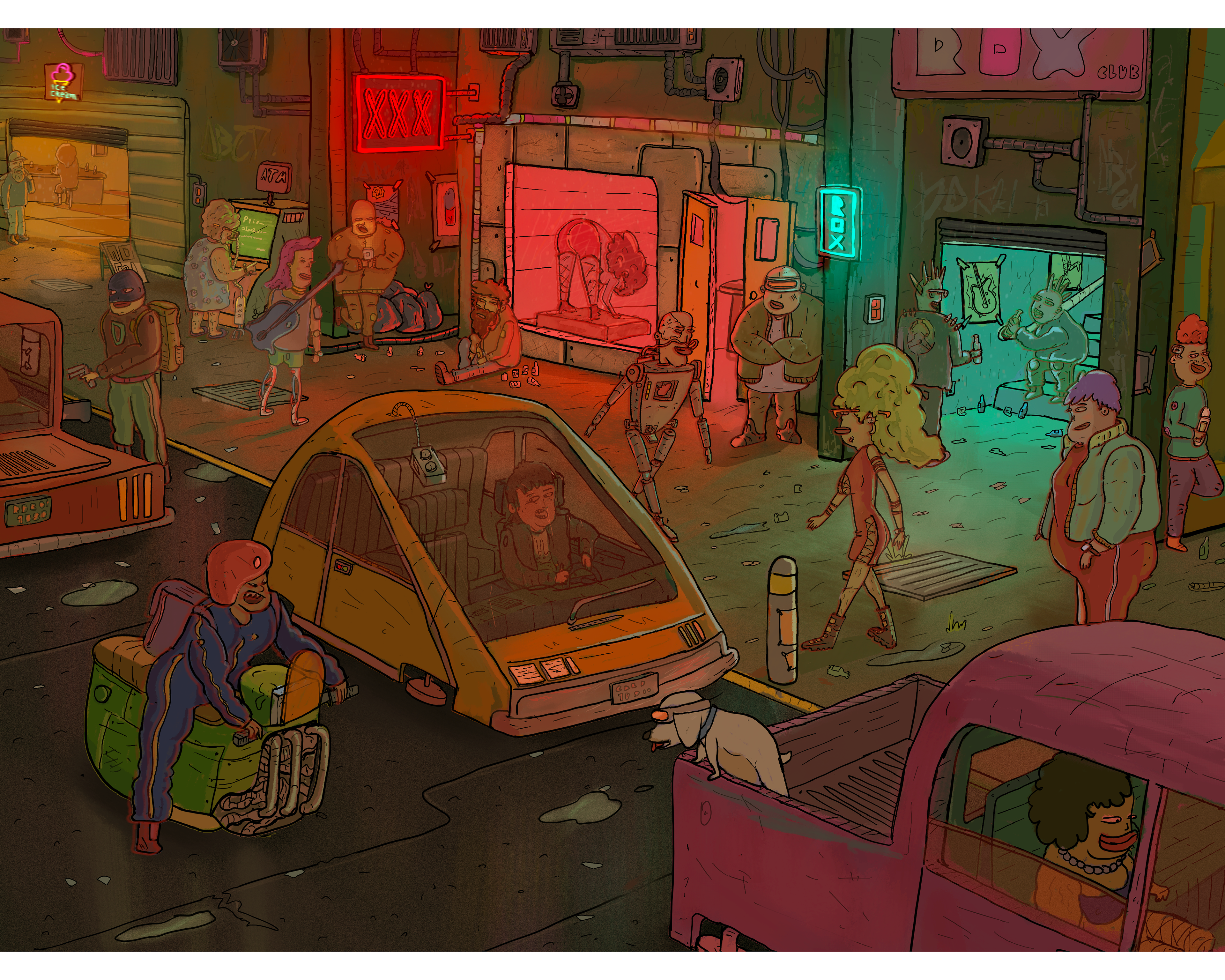 Neon city rush hour,